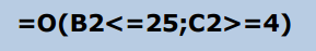 | FUNCIÓN O Sintaxis: | Esta función devuelve Verdadero si se cumple SOLO una de las condiciones del argumento y FALSO si no se cumple ninguna. |