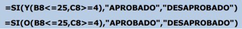 | Las funciones lógicas Y-O se usan anidadas en una función SI , para obtener un resultado con sentido.(condición en el argumento) |