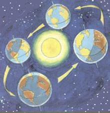 | MOVIMIENTOS DE LA TIERRA La Tierra realiza constantemente dos movimientos: ROTACIÓN Y TRASLACIÓN. ROTACIÓN: La Tierra da vueltas sobre un eje imaginario. Por cada giro emplea 24 horas, es decir, que origina el día y la noche. TRASLACIÓN: Nuestro planeta da vueltas alrededor del Sol. En este recorrido emplea 365 días. | |