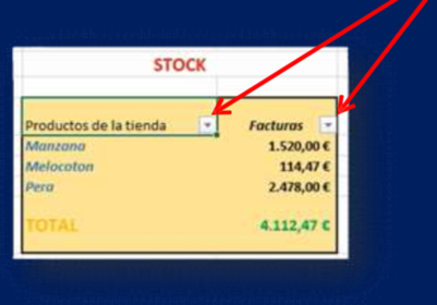 | para poder filtrar ele ejercicio necesitamos cituarnos en la celda en que esta el texto "productos de la tienda". despues activamos la herramienta filtro | una vez seleccionada la herramienta aparecera en la celda seleccionada. |
