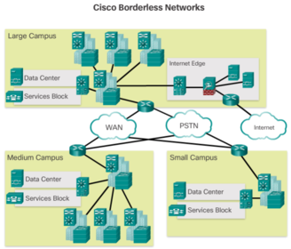 | The Cisco Borderless Network is a network architecture combining innovation and design that allows organizations to support a borderless network that can connect anyone, anywhere, anytime, on any device - securely, reliably, and seamlessly. This architecture is designed to address IT and business challenges, such as supporting the converged network and changing work patterns. | |