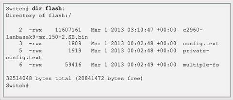 | The boot loader command line supports commands to format the flash file system, reinstall the operating system software, and recover from a lost or forgotten password. Note: Notice that in this example, the IOS is located in the root of the flash folder. | |