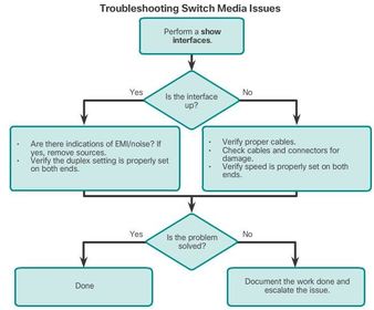 | The default setting for both duplex and speed for switch ports on Cisco Catalyst 2960 and 3560 switches is auto. The 10/100/1000 ports operate in either half- or full-duplex mode when they are set to 10 or 100 Mb/s, but when they are set to 1000 Mb/s (1 Gb/s), they operate only in full-duplex mode. Auto-negotiation is useful when the speed and duplex settings of the device connecting to the port are unknown or may change | When troubleshooting switch port issues, the duplex and speed settings should be checked. Note: Mismatched settings for the duplex mode and speed of switch ports can cause connectivity issues. Auto-negotiation failure creates mismatched settings. All fiber optic ports, such as 100BASE-FX ports, operate only at one preset speed and are always full-duplex. |