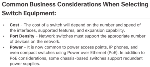 | A switched LAN allows more flexibility, traffic management, and additional features, such as: * Quality of service | * Additional security * Support for wireless networking and connectivity * Support for new technologies, such as IP telephony and mobility services |