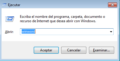 | ¿Cuál es el procedimiento para iniciar un programa, a través del cuadro de dialogo “Ejecutar”? | •Presionar la combinación de teclas WINDOWS + R. •Tipiar en la caja de texto la palabra WINWORD •Presionar ENTER o dar clic en ACEPTAR |