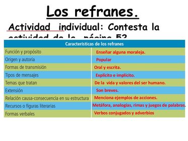 | Refranes | Son sentencias o dichos populares, que enseñan o aconsejan algo. Suelen ser frases en verso, la mayoría pareados de rima consonante o asonante o, al menos, con cierto ritmo que las hace fácil de memorizar. Se transmiten oralmente (de boca en boca). |