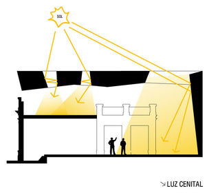 Aprovechamiento de iluminación natural: (Clic en la ficha) De acuerdo al fin para el cual va a ser proyectado cada uno de nuestros espacios, podemos aprovechar este recurso en áreas de transito, áreas comunes y áreas de distribución con cubiertas que permitan el paso de luz natural, utilizando materiales como policarbonato, acrílico o cristal.