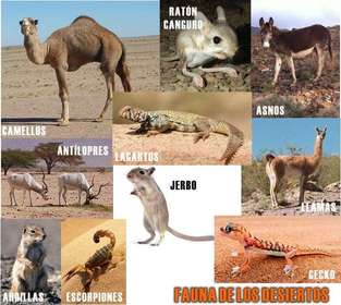 | Desierto: Son extensiones de tierra donde la evaporación excede la precipitación y en consecuencias hay escasez de agua. Las condiciones climáticas son variables. Allí la temperatura puede oscilar entre -5 y 30°C. Flora: Casi nula, hay cactus y arbustos de tallo leñoso y quebradiza. Fauna: Serpientes venenosas, anfibios y aves. | |