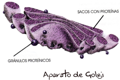 | Aparato de Golgi | Es un conjunto de sacos de forma aplanada y dispuestos de forma apilada, que se encarga de enviar sustancias a través de la membrana plasmática. |
