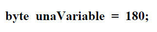 | ¿Qué es una variable tipo "byte"? | Una variable tipo "byte" es aquella que almacena un valor numérico de 8 bits sin decimales en el rango entre 0 y 255. Ejemplo: |