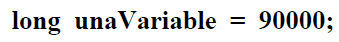 | ¿Qué es una variable tipo "long"? | Una variable tipo "long" (entera extendida) es aquella que almacena un valor numérico de 32 bits sin decimales en el rango entre -2147483648 y +2147483647. Ejemplo: |
