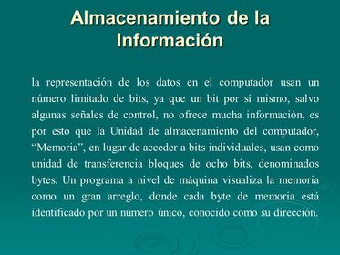 | NUEVAS TENDENCIAS : Inteligencia artificial en agentes racionales no vivos. La Virtualidad , Robotica, Telematica, Cibernetica, Nanotecnologia, Ecotecnologia, Biotecnologia, etc. | CONCEPTOS BASICOS : DATOS : Es la descripcion o valor de un objeto y es representado a traves de numeros, letras, simbolos. INFORMACION: es el resultado de los datos procesados a traves de una aplicacion informatica. COMPUTADOR : maquina elctronica analogica o digital, capaz de resolver calculos matematicos y procesos logicos. INFORMATICA : al proceso de datos que son transformados en informacion.COMPUTACION: Ciencia encargada de estudiar los sistemas, mas precisamente computadoras, que automaticamente gestionan informacion. |