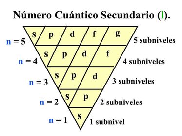 | Numero cuantico secundario o azimutal (l) | Define la forma del orbital, los valores de l dependen de n. l representa un determinado orbital atomico que se designan con las letraas: S,P,D,F,G,H. |