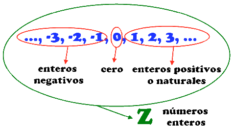 | Todos los números mencionados forman el conjunto de números enteros, donde podemos encontrar a los enteros positivos, los enteros negativos y el cero. |