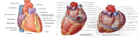 | CARAS DEL CORAZÓN (Esternocostal) | Formada en su mayor parte por el ventrículo derecho Se encuentran los orificios de las arterias aorta y pulmonar En la parte auricular se observan las orejuelas |