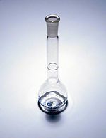 | Matraz aforado El matraz aforado es parte del llamado material de vidrio de laboratorio y consiste en un tipo de matraz que se usa como material volumétrico. Se emplea para medir un volumen exacto de líquido con base a la capacidad del propio matraz, que aparece indicada | |