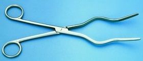 | Pinza de Crisol La pinza de crisol es una herramienta de acero inoxidable y su función es sostener y manipular capsulas de evaporación, crisoles y otros objetos. Se utiliza principalmente como medida de seguridad cuando estos son calentados o poseen algún grado de peligrosidad al manipularlos directamente. | |