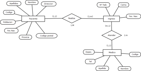 | UN RECTÁNGULO NOS REPRESENTA A LAS ENTIDADES; UNA ELIPSE A LOS ATRIBUTOS DE LAS ENTIDADES, Y UNA ETIQUETA DENTRO DE UN ROMBO NOS INDICA LA RELACIÓN QUE EXISTE ENTRE LAS ENTIDADES, DESTACANDO CON LÍNEAS LAS UNIONES DE ESTAS. | |