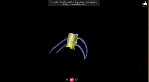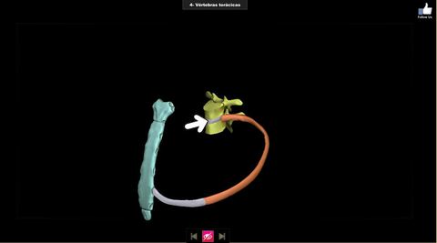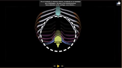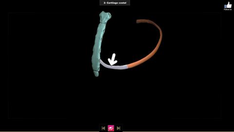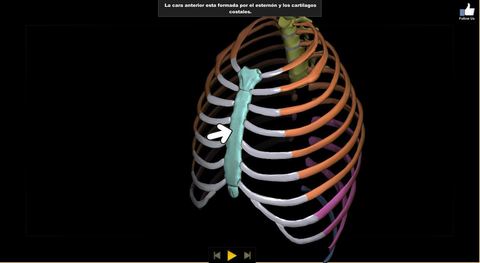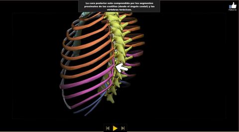 | Cara anterior: Esternón y cartílagos Costales | Cara posterior: Segmentos proximales de las costillas y vertrebas torácicas. |