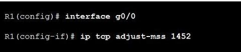 | PPPoE MTU Size Ej: ? interface command helps prevent TCP sessions from being dropped by adjusting the MSS value during the TCP 3-way handshake. ** In most cases, the optimum value for the max-segment-size argument is 1452 bytes. Example this configuration on R1’s LAN interface | |