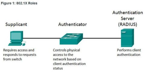 | 802.1X The IEEE 802.1X standard defines a port-based access control and authentication protocol that restricts unauthorized workstations from connecting to a LAN through publicly accessible switch ports. The authentication server authenticates each workstation that is connected to a switch port before making available any services offered by the switch or the LAN 1. Client (Supplicant) - This is usually the 802.1X enabled port on the device that requests access to LAN and switch services and then responds to requests from the switch. In Figure , the device is a PC running 802.1X-compliant client software. | |