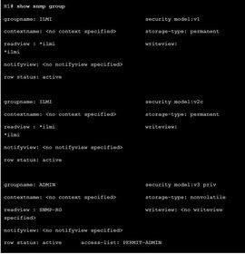 | SNMPv3 Verification Ej: ? command to display information about each SNMP group in the network Use the ping command to verify connectivity between agents and clients. | |