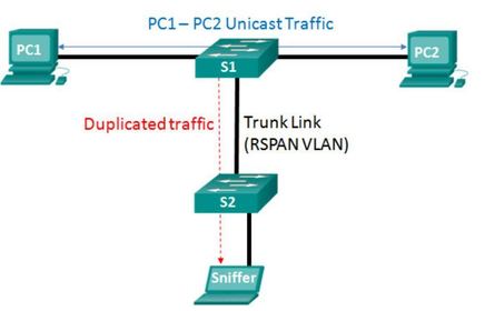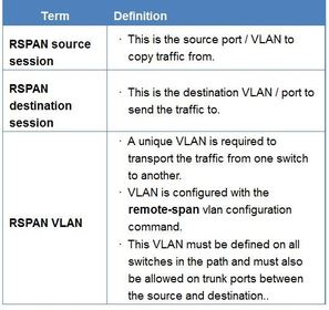 | Remote SPAN ** RSPAN allows source and destination ports to be in different switches. RSPAN is useful in campus networks where a packet analyzer is most likely not connected to the same switch on which you need to capture traffic | |