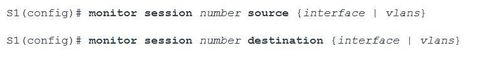 | Local SPAN Configuration Ej: ? commands to define the source port and destination ports for a SPAN session ** Note: The session ID used to define the source and destination ports must be the same in order to assign the ports to the same SPAN session. | |
