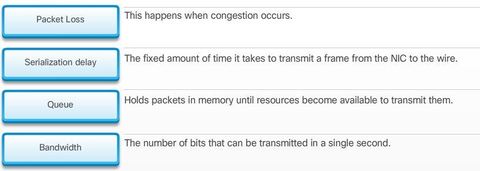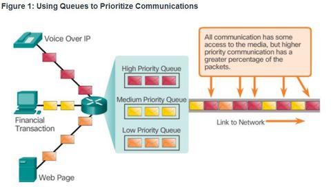 | Prioritizing Traffic Congestion occurs when the demand for bandwidth exceeds the amount available. When the volume of traffic is greater than what can be transported across the network, devices queue, or hold, the packets in memory until resources become available to transmit them ** Queuing packets causes delay because new packets cannot be transmitted until previous packets have been processed. If the number of packets to be queued continues to increase, the memory queues fill up and packets are dropped. | |