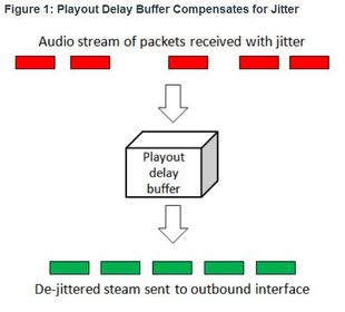 | Packet Loss When a router receives a Real-Time Protocol (RTP) digital audio stream for Voice over IP (VoIP), it must compensate for the jitter that is encountered. The mechanism that handles this function is the playout delay buffer. The playout delay buffer must buffer these packets and then play them out in a steady stream to be converted back to an analog audio stream ** For losses as small as one packet, the digital signal processor (DSP) interpolates what it thinks the audio should be and no problem is audible. However, when jitter exceeds what the DSP can do to make up for the missing packets, audio problems are heard. | |