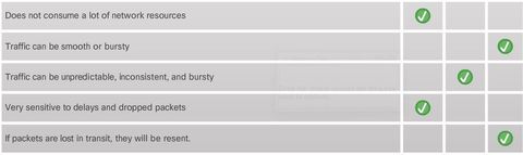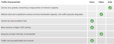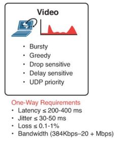 | Video Traffic Characteristics Video traffic tends to be unpredictable, inconsistent, and bursty compared to voice traffic. Compared to voice, video is less resilient to loss and has a higher volume of data per packet ** UDP ports, such as 554 used for the Real-Time Streaming Protocol (RSTP), should be given priority over other, less time-sensitive, network traffic | |