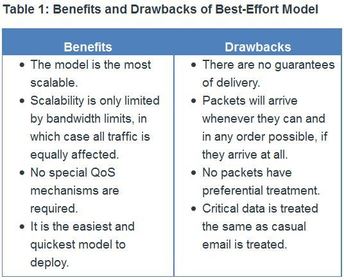 | Best-Effort This approach is still predominant on the Internet today and remains appropriate for most purposes. The best-effort model treats all network packets in the same way, so an emergency voice message is treated the same way a digital photograph attached to an email is treated. Without QoS, the network cannot tell the difference between packets and, as a result, cannot treat packets preferentially. | |