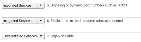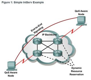 | Integrated Services IntServ provides a way to deliver the end-to-end QoS that real-time applications require by explicitly managing network resources to provide QoS to specific user packet streams, sometimes called microflows. It uses resource reservation and admission-control mechanisms as building blocks to establish and maintain QoS. ** This practice is similar to a concept known as “hard QoS.” Hard QoS guarantees traffic characteristics, such as bandwidth, delay, and packet-loss rates, from end to end. Hard QoS ensures both predictable and guaranteed service levels for mission-critical applications. | |