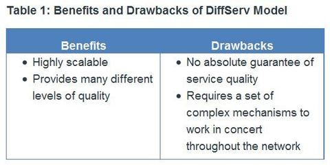 | Differentiated Services ** The DiffServ design overcomes the limitations of both the best-effort and IntServ models. DiffServ can provide an “almost guaranteed” QoS while still being cost-effective and scalable. Note: Modern network primarily use the DiffServ model. However, due to the increasing volumes of delay- and jitter-sensitive traffic, IntServ and RSVP are sometimes co-deployed. | |