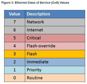 | Marking at Layer 3 Ej: displays the content of the 8-bit (i.e., 7 – 0) field. ** Note: The IP extended Congestion Notification (ECN) bits are used to identify a Layer 2 QoS marking. Examples include Ethernet 802.1p Class of Service (CoS) bits, the MAC bridge 802.1D user priority bits, or Multiprotocol Label Switching Experimental values (MPLS EXP). The first 3 significant left-hand high-order bits are referred to as the IP Precedence field. The 8 bits provides a total of eight possible classes of service | |