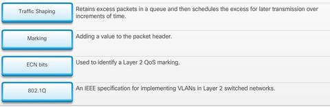 | Traffic Marking How traffic is marked usually depends on the technology. Ej: The decision of whether to mark traffic at Layers 2 or 3 or both is not trivial and should be made after consideration of the following three points: | 1. Layer 2 marking of frames can be performed for non-IP traffic. 2. Layer 2 marking of frames is the only QoS option available for switches that are not “IP aware” 3. Layer 3 marking will carry the QoS information end-to-end |