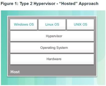 | Type 2 Hypervisors A hypervisor is software that creates and runs VM instances. The computer, on which a hypervisor is supporting one or more VMs, is a host machine. Type 2 hypervisors are also called hosted hypervisors. This is because the hypervisor is installed on the existing OSThen, one or more additional OS instances are installed on the hypervisor A big advantage of Type 2 hypervisors is that management console software is not required. | |