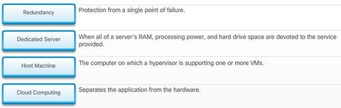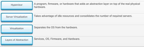 | Network Virtualization Two major network architectures have been developed to support network virtualization: - Software Defined Networking (SDN) - A network architecture that virtualizes the network. - Cisco Application Centric Infrastructure (ACI) - A purpose-built hardware solution for integrating Cloud computing and data center management. | Over a decade ago, VMware developed a virtualizing technology that enabled a host OS to support one or more client OSs. Most virtualization technologies are now based on this technology. The transformation of dedicated servers to virtualized servers has been embraced and is rapidly being implemented in data center and enterprise networks |