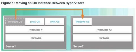 | Installing a VM on a Hypervisor Ej: assume that Server1 in Figure becomes low on resources. To make more resources available, the management console moves the Windows instance to the hypervisor on Server2. ** The management console provides recovery from hardware failure. If a server component fails, the management console automatically and seamlessly moves the VM to another server. | |