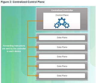 | Control Plane and Data Plane ** To virtualize the network, the control plane function is removed from each device and is performed by a centralized controller The centralized controller communicates control plane functions to each device. Each device can now focus on forwarding data while the centralized controller manages data flow, increases security, and provides other services. | |