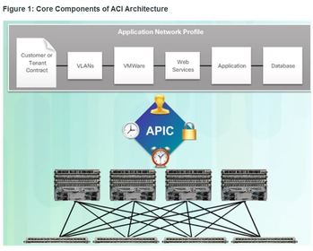 | Core Components of ACI 1. Application Network Profile (ANP) - An ANP is a collection of end-point groups (EPG), their connections, and the policies that define those connections. The EPGs shown in Figure 1, such as VLANs, Web Services, and Applications, are just examples. An ANP is often much more complex. 2. Application Policy Infrastructure Controller (APIC) – is considered to be the brains of the ACI architecture. APIC is a centralized software controller that manages and operates a scalable ACI clustered fabric. It is designed for programmability and centralized management. It translates application policies into network programming. | |
