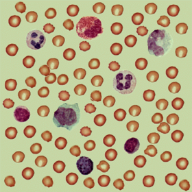 | MIELOCITO | Es una célula típica de la médula ósea, originada del mieloblasto, mayor que el leucocito con un núcleo vesicular y un protoplasma de granulaciones neutrófilas y basófilas. Normales en la médula ósea, aparecen en la sangre en ciertos tipos de leucemia. |