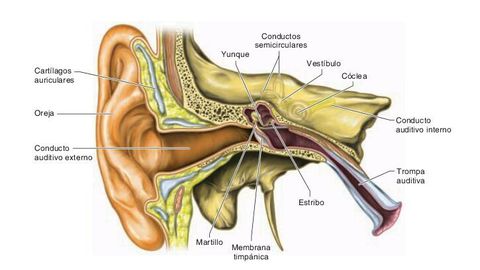 | Función del oído externo | Recibir y transmitir las ondas sonoras a los huesecillos del oído medio |