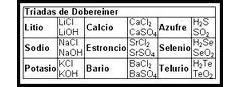 | Döbereiner | 1817 Alcanzó a elaborar un informe que mostraba una relación entre la masa atómica de ciertos elementos y sus propiedades |