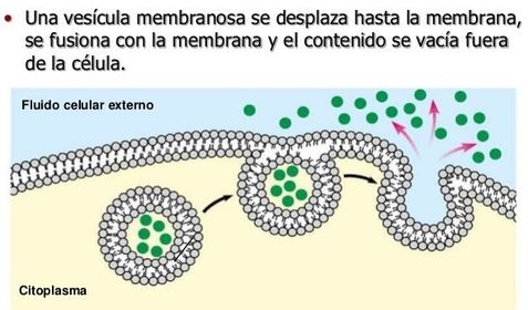 | EXOCITOSIS | Es el proceso contrario a la endocitosis, por el cual, la célula expulsa al exterior partículas del citoplasma envueltas en una vesícula. Esta vesícula al llegar a la membrana de la célula, se fusiona con ella formando parte de la misma. |