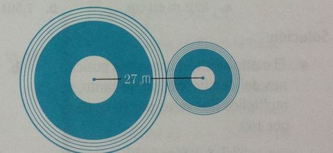| 3. Deportes. Dos pistas de patinaje circulares, una para niños y otra para adultos, se han construido tangentes entre si. Si la distancia entre los centros de las pistas es de 27m, ¿cuanto miden los radios si el de la pista para adultos mide el doble que el de la pista para niños? | 13,5 |