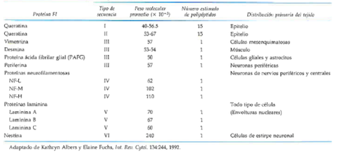 | Familia de 70 proteínas de los filamentos intermedios | |