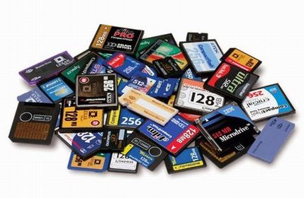 | Una tarjeta de memoria es un chip de memoria que mantiene su contenido. El concepto de memoria flash fue acuñado por Toshiba, por la capacidad para borrar los datos en un "flash" (instante). | |