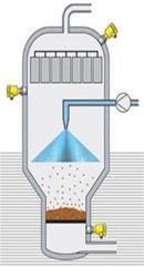 | Descripción de un secador de lecho fluidizado. | Es aquel que fluidiza se suspende, no se transporta.La suspensión, introducida por medio de la tobera de pulverización en la cámara de producto, da lugar a la formación de las partículas fluidizadas hasta que se vuelven a caer en el lecho fluidificado debido a su peso. |