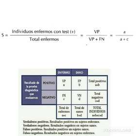 | Diferencia entre test sensible y específico..... | Sencibilidad descarta enfermedad. Especificidad la confirma. |